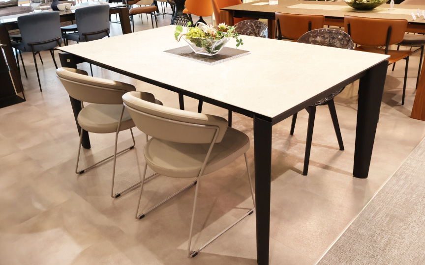 都会で洗練されたデザインが特徴的なダイニングテーブル。自分だけの理想のダイニング空間を演出できます。